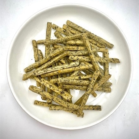 Bánh đa que mè đen mang hương vị của một loại bánh truyền thống của Việt Nam. Bánh được làm từ các nguyên liệu đơn giản như bột mỳ, mè đen, đường, dầu thực vật và một số gia vị khác.Với hương vị độc đáo và sự giòn tan đặc trưng, bánh đa que mè đen thường được ưa chuộng làm quà biếu hoặc là món ăn nhẹ trong các buổi gặp gỡ bạn bè, gia đình.